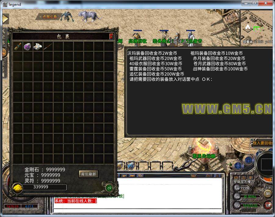 【命运之刃】:任务同盛大设置,属性牛逼。金矿可通过比奇矿区门口进入单独挖矿地图(防止挂机以及恶意捣乱)