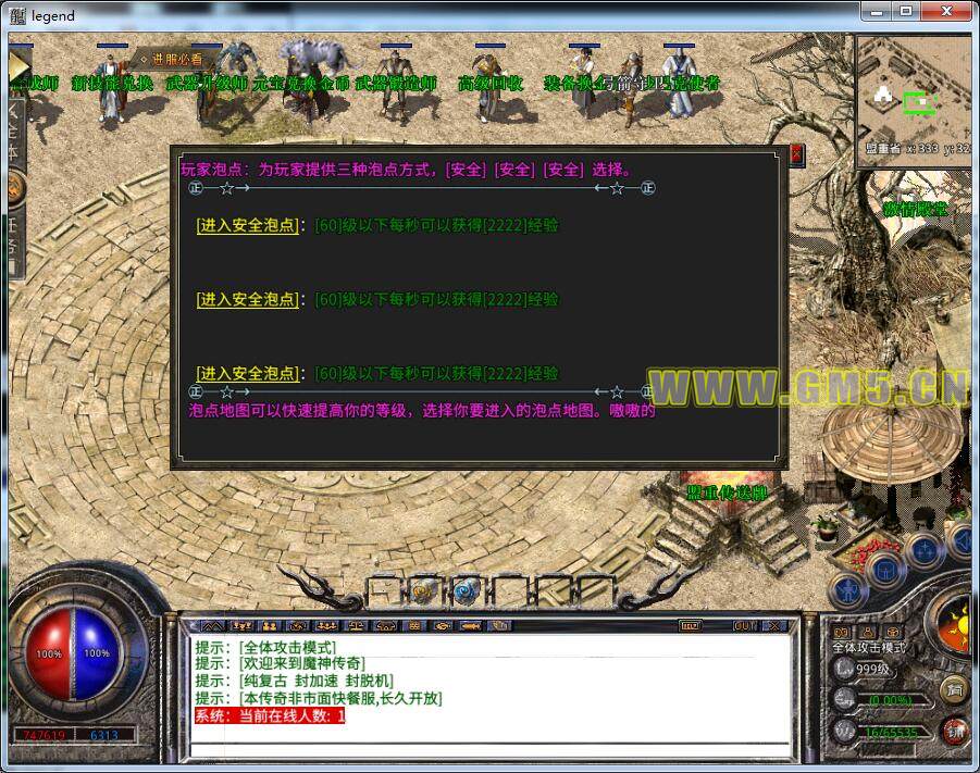 【激情殿堂】:每四小时在土城[激情殿堂]NPC里刷新一只火龙神爆一切装备,更有超级祝福油,战神等爆出!
